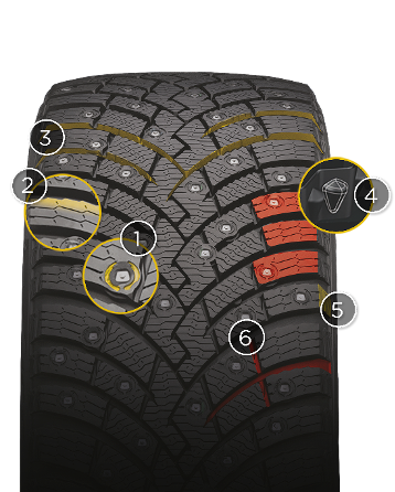 • Надежная работа шины на льду обеспечена уникальной технологией и асимметричной геометрией двойного шипа.